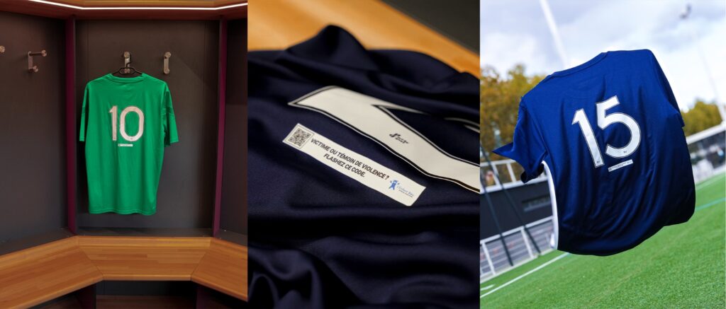 La particularité de ce maillot se trouve sous le numéro du joueur : un QR code y est intégré. Les enfants victimes ou témoins de violences peuvent le scanner pour accéder à la plateforme sécurisée de L’Enfant Bleu, où ils trouveront toutes les ressources nécessaires pour parler à une psychologue ou à une juriste de l’association et recevoir un accompagnement adapté.